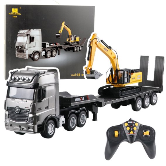 • Ciężarówka Z Naczepą Koparka Zdalnie Sterowana RC Światła Dźwięk Huina 1:18
