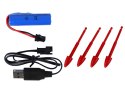 W zestawie znajdują się cztery strzałki, które można wystrzeliwać z lufy czołgu. To dodaje zabawie element rywalizacji i umożliwia "strzelanie" do celów.