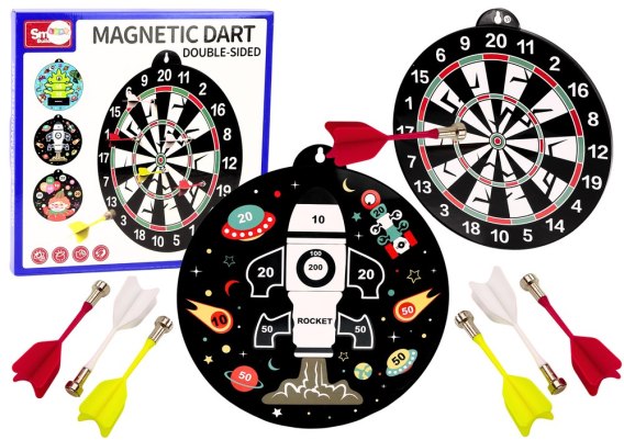 Dwustronność tarczy to jej kluczowa cecha. Z jednej strony prezentuje klasyczną tarczę strzelecką, idealną dla tradycyjnych rozgrywek. Z drugiej strony, odkryjesz kosmiczną rakietę z punktacją na poszczególnych sekcjach, co stanowi oryginalną alternatywę dla tych, którzy poszukują czegoś nowego i unikatowego.