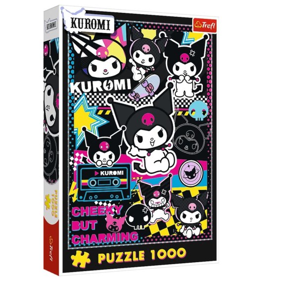 Puzzle W świecie Kuromi, składające się z 1000 elementów, przedstawiają bohaterów Kuromi. Po ich ułożeniu powstanie obrazek w rozmiarach 683x480 mm.