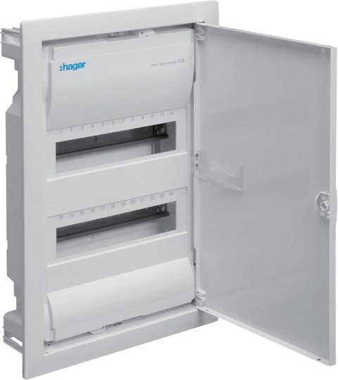 Rozdzielnica podtynkowa z drzwiami metalowymi, 2 rzędy, 24 moduły, IP30, HAGER Volta VU24NE