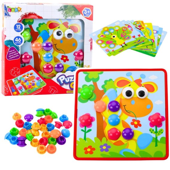 Układanka Guzikowa Mozaika Kreatywna Kolorowa 12 Plansz 46 Guzików