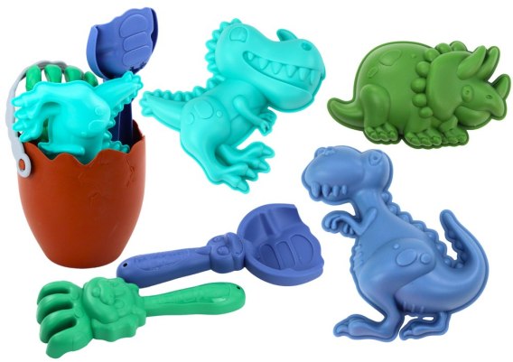 Zestaw Do Piasku Dinozaury Wiaderko Jajo Grabki Łopatka Foremki