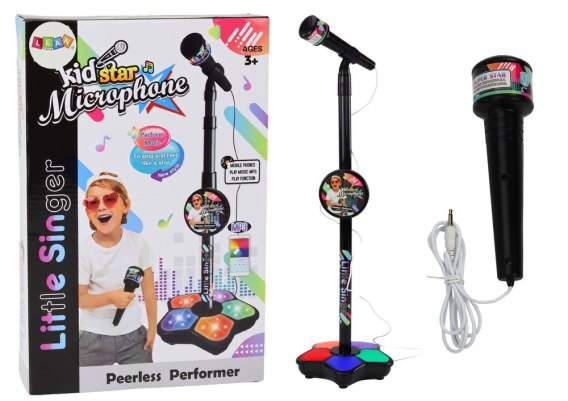 Mikrofon dla dzieci ze statywem! Doskonała jakość dźwięku, regulowany statyw w kolorze czarnym. Idealny prezent, który rozwija pasję muzyczną i wzmacnia więzi rodzinne.
