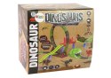 Duży tor zbudowany jest z mostów i tuneli oraz dużej spirali. W zestawie znajduje się dinozaur z zamontowanymi kółkami, który porusza się po tym torze. Figurka może emitować światło i dźwięk. Prawdziwy ryk jak u dinozaura! Włącz przełącznik i zobacz jak mknie po torze!