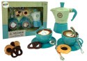 Serwis posiada także różne wzory nakładek na kawę, maluch może zostać profesjonalnym baristą i serwować kawę z różnymi wzorami. Kawiarka pozwoli na profesjonalne wykonanie, natomiast łyżeczki w oryginalnym kształcie będą bardzo ładnie prezentować się wśród zastawy.