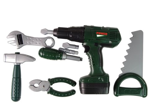 Organizer posiada dwie przegródki, jedna z nich pełni funkcję stojaka do wiertarki, druga szufladki na śrubki, nakrętki. Wszystkie narzędzia wykonane są z plastiku. Wkrętarka zasilana jest na baterie, po włożeniu baterii i naciśnięciu przycisku wiertło kręci się i dodatkowo wydaje realistyczny dźwięk.